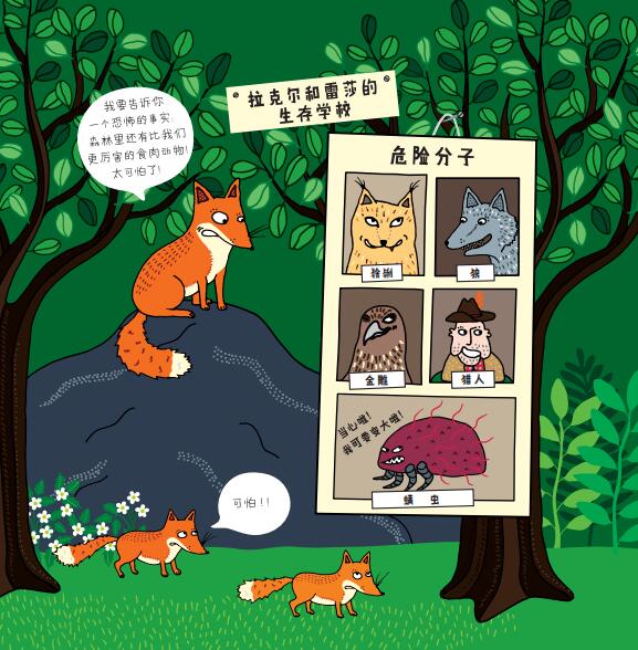 本书为儿童科普绘本,重点介绍了一对拥有美丽皮毛和大尾巴的狐狸夫妇的日常生活。森林里既有只吃菜的动物,也有只吃肉的动物。还有像狐狸这样,什么都吃的动物!本书以狐狸拉克尔和雷莎的有趣故事,给孩子们讲述动物知识:狐狸最喜欢的食物是田鼠和老鼠。他们也吃水果、浆果、野兔、昆虫、蚯蚓、狍子幼崽、鸟、蛋、青蛙,甚至还包括垃圾和残渣!在拉克尔和雷萨眼中,任何东西都是一顿美味大餐……