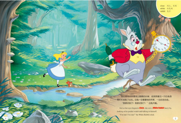 一天,爱丽丝在野外看见一只穿衣戴帽、匆匆赶路的兔子。出于好奇,她跟着兔子钻进了一个树洞,继而掉落到一片未知的奇幻世界。在这里,爱丽丝的身形忽大忽小,还遇见了搞怪的双胞胎兄弟、癫狂无比的疯帽匠和三月兔、以及来无影去无踪的妙妙猫,由此引出了不少的笑话和奇遇。当然,最令爱丽丝感兴趣的还是那只慌里慌张赶路的兔子。在它的引领下,爱丽丝来到了红心女王的城堡。然而,更大的冒险正等待着她
