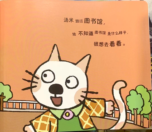 汤米路过图书馆,他不知道图书馆是什么样子,很想去看看。