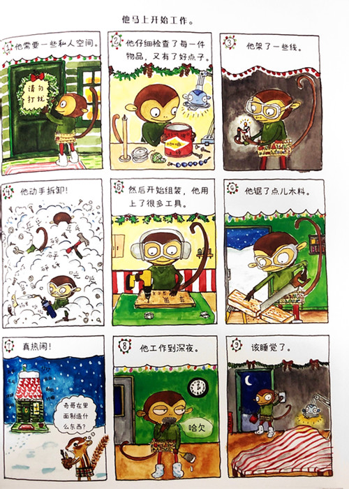 他叫奇哥蹦蹦,是一只系着工具带的小猴他会使用工具修理各种器具,他很有创造力。天,他发现自家门口的马路对面有一张小桌子上面放着奶油香蕉冰激凌,奇哥尝了尝那盘神秘的香蕉冰激凌是假的!他很奇怪,为什么这个香蕉冰激凌使用塑料做的呢?就在这时,一只大箱子从他头顶上扣下来。原来是个陷阱!他被抓住了!他从箱子上的小洞向外望去,看见一个马戏团老板奇哥没办法逃出去,被驮在自行车上带回了马戏团。可是马戏团老板没有意识到,奇哥还系着他的工具袋呢!聪明的奇哥用什么办法惩罚了马戏团老板,逃出了马戏团呢?接下来,他又会带给我们什么惊喜的故事呢? 快打开书看看吧!