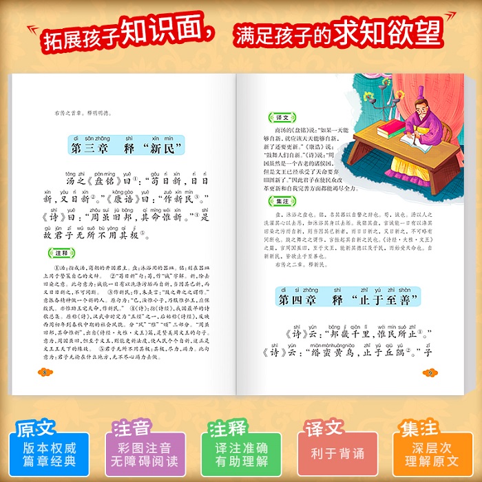 《大学》提出了明德、亲民、止于至善三纲领,还提出了格物、致知、诚意、正心、修身、齐家、治国、平天下八条目,因而具有由“内圣”而“外王”的重要意义。《中庸》强调“诚”,把“诚”视作思想体系的*范畴,将对“诚”的追求作为“人道”的准则,同时提出了“博学之”、“审问之”、“慎思之”、“明辨之”、“笃行之”的学习过程与认知方法。