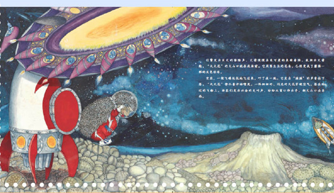 讲述的是小刺猬实现梦想的故事。小刺猬的理想是当一名宇航员。有一天,机会来了。宇宙飞船有一个排气孔出了故障。小刺猬飞去另一个小星球,朝排气孔扔硬币,看到砸出的火花上开出奇怪的花儿。*后,小刺猬不仅找出堵塞的原因,还用独特的办法给修好了。回到家后,他成了英雄,外星人为他欢呼,实验室的科学家也为他喝彩。