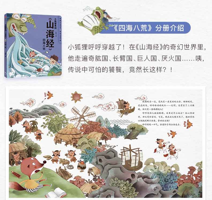 “小狐狸勇闯《山海经》”系列是一套专门为小朋友绘制的《山海经》神话穿越故事绘本,包括《四海八荒》《女娲补天》《夸父追日》《后羿射日》《精卫填海》《炎黄大战》《大禹治水》等经典故事。本系列通过萌趣的形象设计和精彩的故事情节,带领孩子探访华夏文化的起源,让他们增强身为中国人的自豪感。
