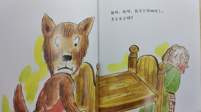 我呀,我呀,经常饿肚子的我,居然在帮看起来很好吃的绵羊阿姨搬东西?咦,我这是怎么了?啊啊啊,我肚子太饿啦,我要吃了你!咦,绵羊阿姨居然不怕我,还给我做了好吃的咖喱饭,我啊,一口气吃了十碗呢!这么好的绵羊阿姨,我怎么能吃掉她呢。