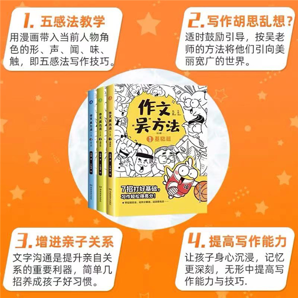 1基础篇(写作技法):打好基础,写好细节,习作轻松得高分! 2进阶篇(写作思维):提高段位,学会谋篇布局满分拿下考场作文! 3亲子篇(家庭引导):全家总动员,下一个作家就是你!