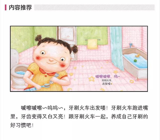 《宝宝好习惯养成绘本:牙刷火车出发喽》中的每个故事就好像发生在我们身边,通过亲子共读,故事中的间接经验就能成为孩子可以借鉴的案例。而且,我们成人也从故事中学到一些育儿的妙计。宝宝好习惯养成绘本,风靡韩国的亲子教育方案。