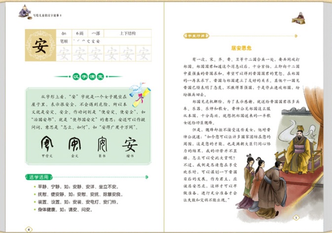 全书彩色印刷,图文并茂,二者相得益彰,文字重在讲述汉字的根与源,画面意在诠释汉字的形与意。