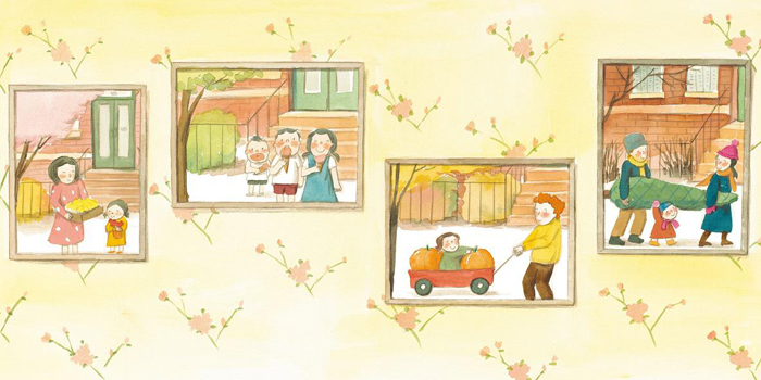 廉惠媛的这部作品,文图结构完美对称,创作技法娴熟。她用温暖明亮的颜色和生动细腻的笔触,跨越四季,记录着几代人的成长。就像一个小女孩,带着我们翻阅她的家族相册。整本书虽只言片语,但温暖至极。