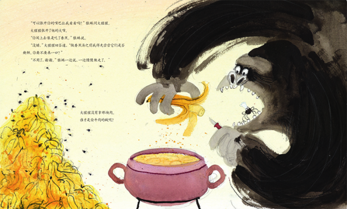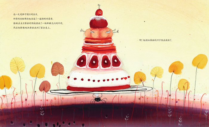 今天是狮子国王的生日,狼蛛为他准备了一个美味的生日蛋糕,并在蛋糕顶端摆放了一块鲜嫩无比的牛肉。 可狼蛛刚一转身,那块牛肉就不见了!狼蛛很生气。到底是谁偷吃了蛋糕上的肉呢?