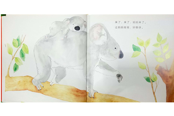 小猫、小考拉、小海狮、小鸭子、小朋友都在等妈妈……,小动物在等待妈妈来接自己回家的时间里,并没有翘首期盼母亲接自己回家,小宝贝没有无所事事或焦灼难安,而是利用自己身边的玩具自得其乐地玩起了幻想游戏。想象出一幕幕相亲相爱的母子游戏图。