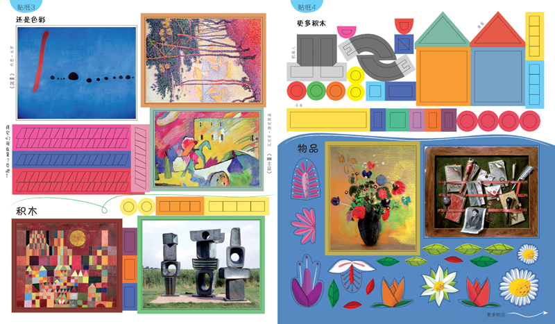 *贴纸——用孩子最喜欢的游戏方式帮助他们培养敏锐的艺术观察力和想象力。手眼结合、即拿即玩儿,完成贴纸,拥有的就是一本全新绚丽多彩的艺术欣赏画册啦!