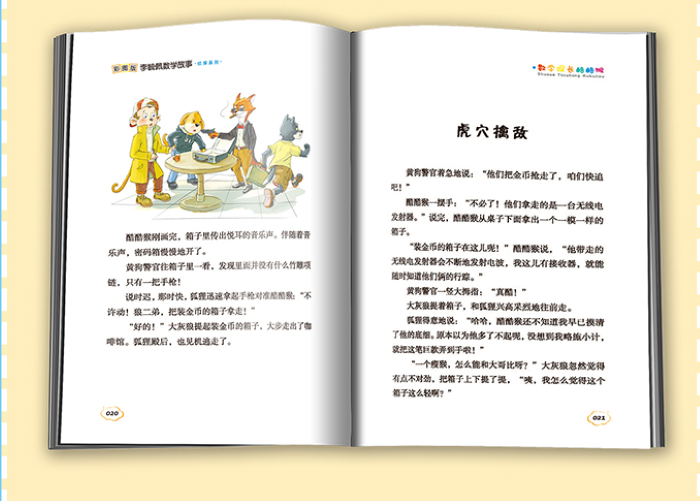 《彩图版李毓佩数学故事》是科普作家李毓佩影响最大的作品,共20册,分为智斗故事、侦探故事、冒险故事三大类。《爱克斯探长出山》是侦探故事中的一册,故事主要讲述:爱克斯探长喜欢用未知数X和方程来解题破案,而潜入和平城的一个国际暴力组织分战刀、假面、毒蛇、鼹鼠四个支队,偷窃、暗杀、绑架,无恶不作。为了和平城的稳定,爱克斯探长与大头参谋长等人,组成保卫战队,与敌人展开斗智斗勇的较量。