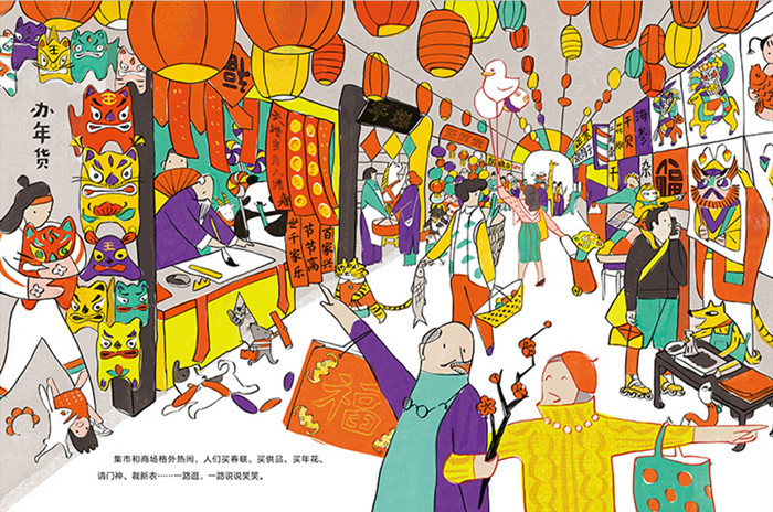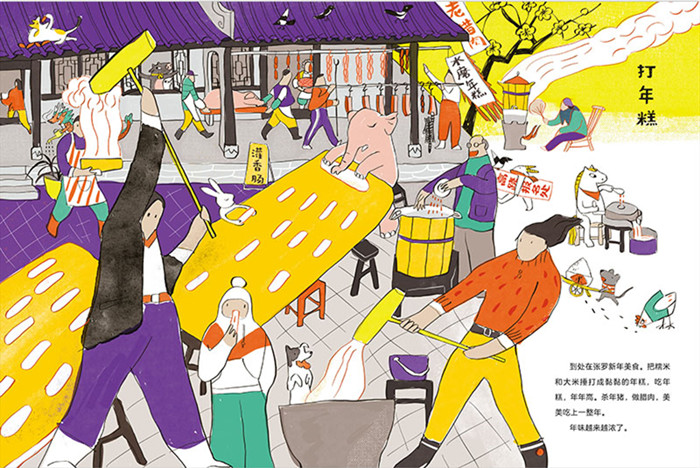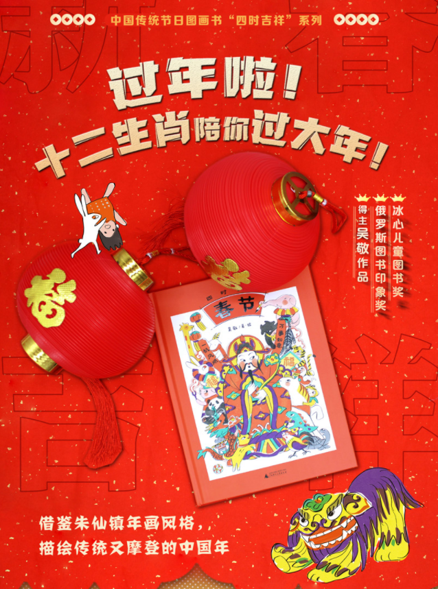 ★作者曾获冰心儿童图书奖、2022年俄罗斯“图书印象”(ImageoftheBook)国际插画与图书设计大赛原创图书奖。 ★细致展现整个过年期间的传统习俗:喝腊八粥、祭灶、扫尘、北小年、南小年、打年糕、做腊肉、灌香肠、办年货、贴年红、赶春运、包饺子、吃年夜饭、守岁、拜年、赶庙会、看社火、包汤圆、闹元宵。 ★图画借鉴传统朱仙镇木版年画的墨线套印工艺,以丰富的细节、大胆的撞色展现古老又时尚的中国。 ★从典籍和民间故事中汲取文化元素,每一个画面都包含了很多与传统习俗有关的事件、形象、物品,灶王爷、财神爷、山魈、偷青的熊猫,充满可解读的细节。 ★十二生肖集结,每一个生肖动物都有故事,另外还融入了孩子喜爱的动物形象,长颈鹿、大象、花猫等,热热闹闹过大年。