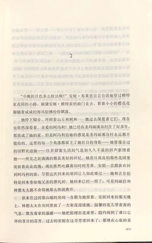“今晚的月色多么皎洁啊!”安妮·布莱思自言自语地穿过赖特 家花园的小路,朝黛安娜·赖特家的前门走去,看着小小的樱花花瓣随着咸咸的海风轻拂纷纷飘落。