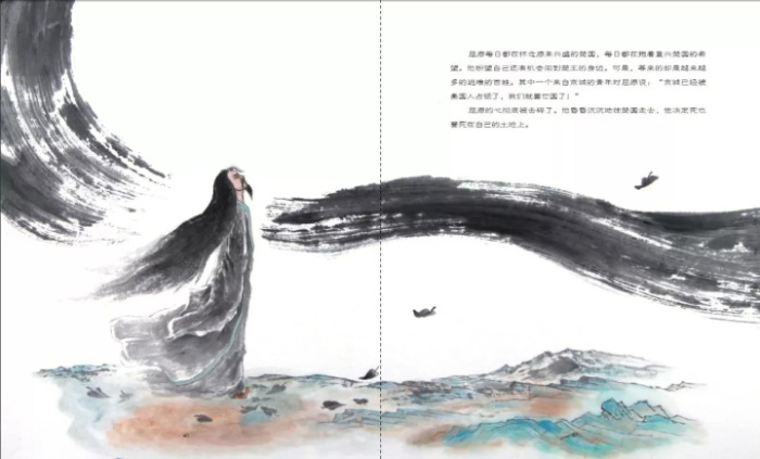 屈原在流放途中,接连听到楚怀王客死和郢城攻破的噩耗后,万念俱灰,仰天长叹一声,投入了滚滚激流的汩罗江。