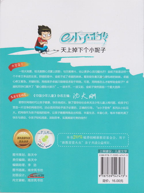 《e小子歪传:天上掉下个小妮子》讲述了:一场大地震,给无数颗心灵蒙上阴影;与灾难搏斗,也让更多心灵闪耀光芒!金妮子就是这样一个不幸又幸运的女孩。阴错阳差中,金妮子成了卓越的妹妹。看到背负着沉重心理包袱的妹妹,卓越心疼又着急。关键时刻,网络高手卓越只能继续求助于网络。可是,用网络怎么才能帮助金妮子?卓越和同学们展开了“爱心援助大接力”。一波未平,一波叉起,金妮子突然面临—个重大选择。