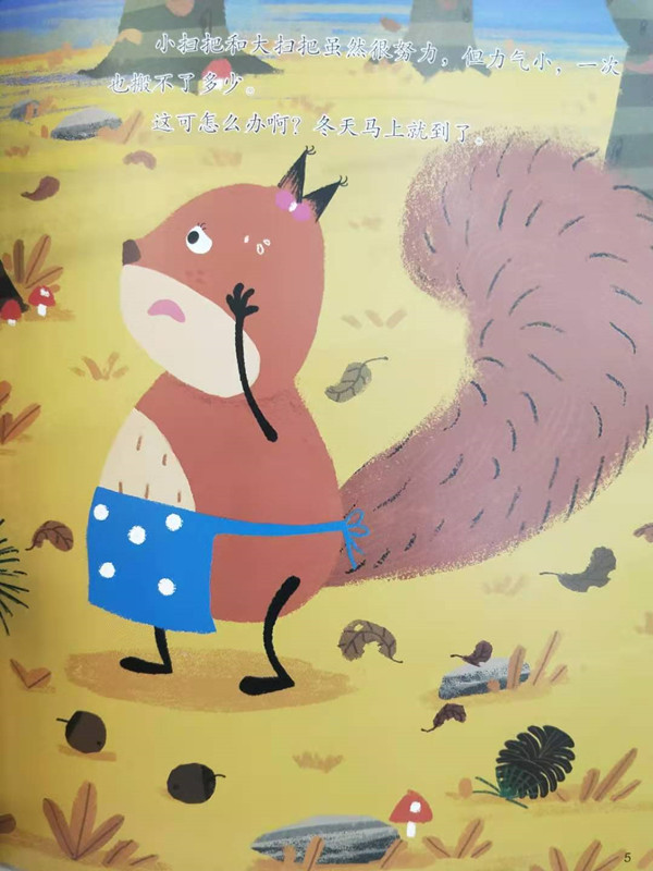 冬天快来了,松鼠一家正准备过冬的食物,可搬运松果是一件很辛苦的事。小扫把和大扫把通过观察蚂蚁搬家找到了好办法。这个好办法让松鼠一家备好了很多食物,让附近的小动物们都好羡慕。到底是什么办法?我们也去看看吧!