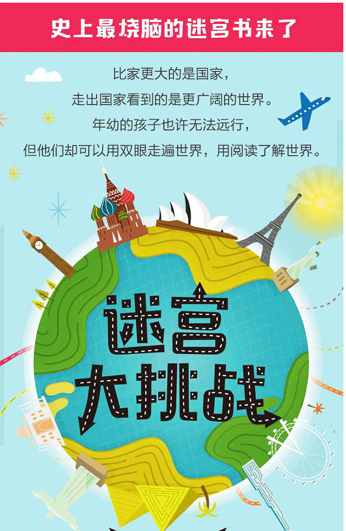 不仅是一本迷宫书,还是一本地理百科书,一本包含找一找、配对、走迷宫的互动游戏书,可以锻炼孩子的观察记忆能力、……
