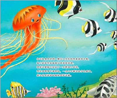 小水母不得不随着海水漂来漂去,他一点也不喜欢这样!他满心盼望能固定在一处。没想到,生来被固定在一处的扇贝却满心盼望能漂向远方,像小水母那样去看看神奇瑰丽的大千世界。那么小水母会不会喜欢上自己的生存方式呢?