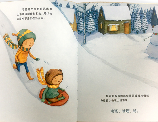 大雪过后,看着街边堆的形状各异的雪人,托马斯想堆一个有史以来又大又棒的雪人。他自己尝试了好几次,也没办法实现,所以他想到找一个帮手一起来完成。可是,他能找的只有一头熊,而且这头熊正在冬眠。怎么叫醒冬眠中的熊呢?托马斯试了多种办法,挠痒痒、唱歌……后来,他烤出香甜的饼干,用香味把冬眠的熊唤醒了。 他们一起来到雪地上,合力堆了一个又大又棒的雪熊,还一起挖雪洞、玩雪橇,享受冬日的美好时光!