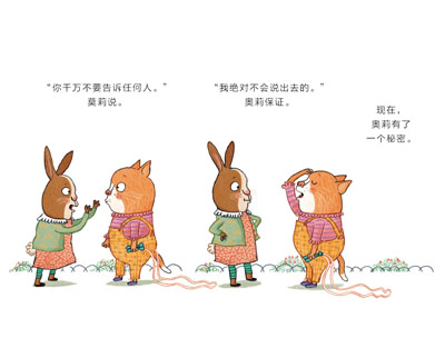《嘘!这是个秘密》——莫莉有个秘密,她告诉了奥莉,还叮嘱奥莉不要告诉别人。奥莉守着这个秘密守了好久,最后没忍住,把秘密告诉了乔乔。结果,乔乔把秘密告诉了马克,马克告诉了拉拉,拉拉最后告诉了莫莉。哦!秘密说破了……