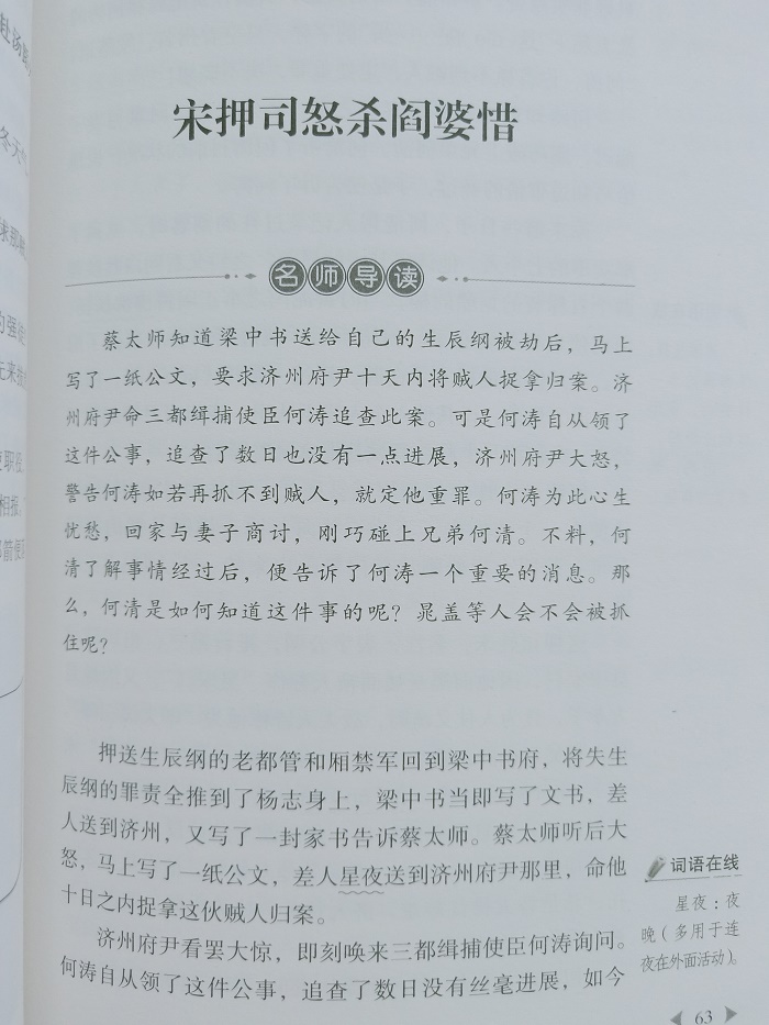 《水浒传》是中国四大名著之一,是一部以北宋末年宋江起义为主要故事背景、类型上属于英雄传奇的章回体长篇小说。全书通过描写梁山好汉反抗欺压、水泊梁山壮大和受宋朝招安,以及受招安后为宋朝征战,很终消亡的宏大故事,艺术地反映了中国历目前宋江起义从发生、发展直至失败的全过程,深刻揭示了起义的社会根源,歌颂了起义英雄的反抗斗争和他们的社会理想,也具体揭示了起义失败的内在历史原因。本书选取删减版本,适合小学生阅读,更有区别于其他同类品种的课程化这一体系。书中设置“阅读规划”“名师点评”“延伸阅读”诸板块。可以说,本书从阅读能力、课程建构等方面,多方面满足了师生需求。