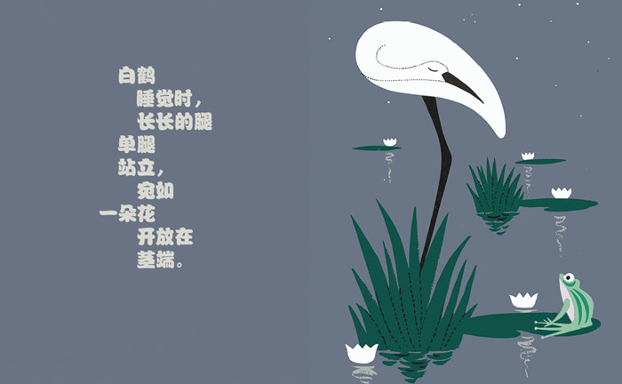 白鹤睡觉时,长长的腿单腿站立,宛如一朵花开放在茎端。
