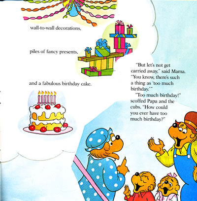 Is there such a thing as too much birthday? Poor Sister isoverwhelmed by her big, noisy sixth-birthday party. Her sympatheticparents help her realize the true importance of having a birthdayin this humorous exercise in moderation for cubs--and parents.