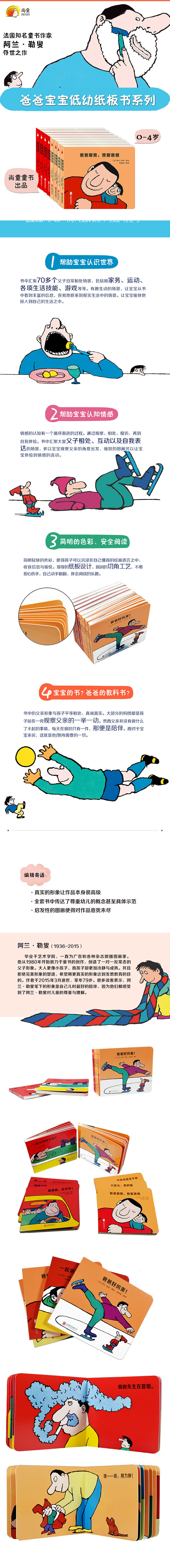 书中汇聚大量父子相处、互动以及自我表达的场景,多以孩子观察父亲的角度出发,细致的图画可以让孩子体验到情感的流动,进而达到认知的目的。