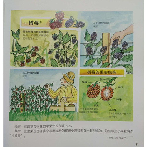 从介绍和书摘上,我看到这套书里还有关于蔬菜水果从生长到来到我们的餐桌上的过程,以及和这些食物有关的历史趣闻,甚至还有一些大人可能也不知道的科学知识,比如玉米的分类、花朵受粉的过程。
