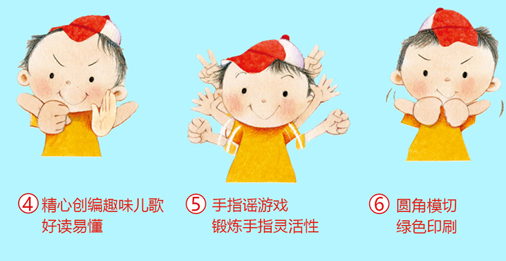 5. 寓教于乐、简单易学的手指谣游戏,锻炼宝宝的手指灵活性,发展其手眼协调能力,促进宝宝精细动作及触觉、思维等方面的发展。