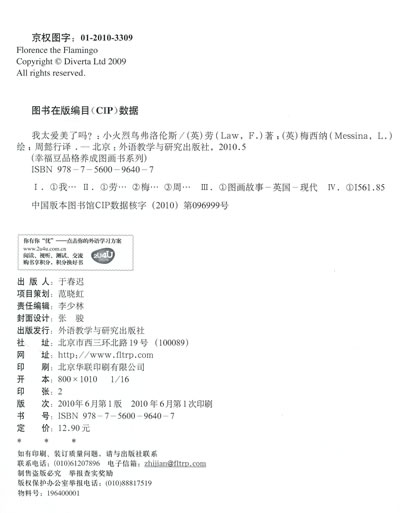 弗洛伦斯是一只漂亮的小火烈鸟,可是她只顾着欣赏自己的美丽,连身体健康和安全都不顾。一个炎热的夏天,湖水被晒干了,只剩下她一个人站在干涸的湖里,欣赏自己漂亮的“脚镯”。这时,危险就在她身边……后来她得救了吗?她意识到自己的错误和愚蠢了吗?