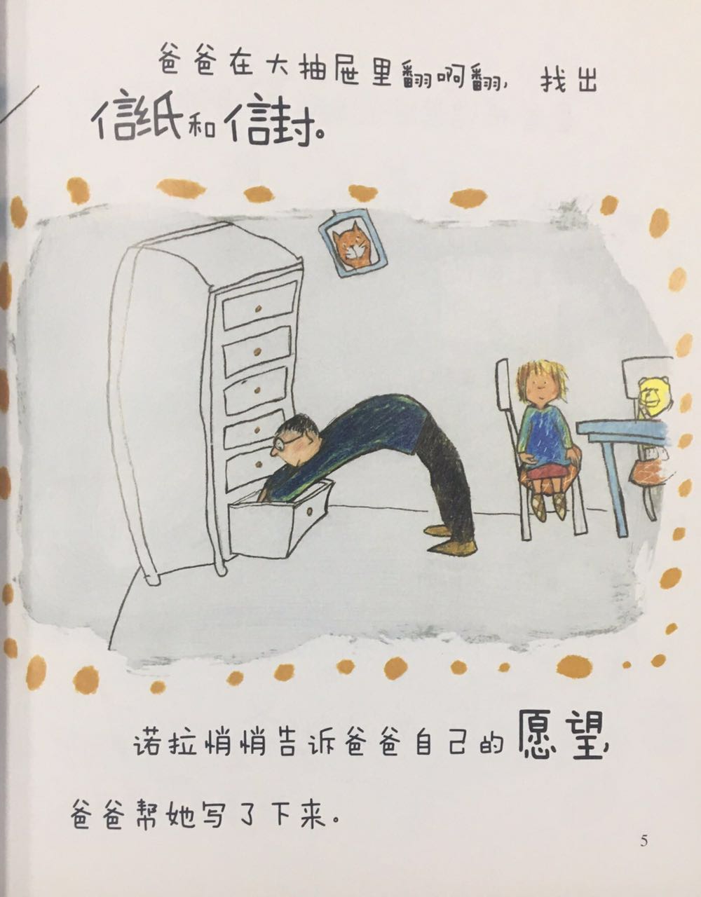 圣诞节快到了,诺拉请爸爸给圣诞老人写了一封信,毕竟得让他老人家知道自己想要什么礼物呀。圣诞老人会看到信吗?他真的亲自来取信了,千真万确,诺拉有证据!每个孩子恐怕都会问过是否真的有圣诞老人的问题,《送给圣诞老人的苹果》中诺拉的爸爸认真地帮她写了封信给圣诞老人,帮孩子保有一颗童心。