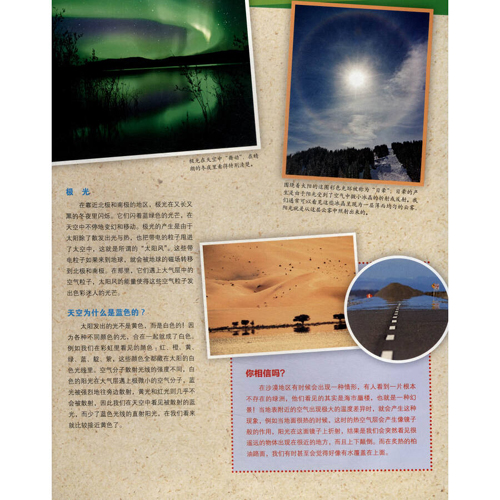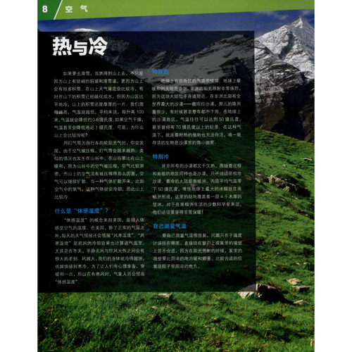 在寒风中我们会觉得冷,在雨雪中会被淋湿,在夏季炎热时会流汗。无论何时何地,我们都会遇到天气。风是怎么形成的?雨和雪呢?什么样的云会带来阴天,什么样的云会带来晴天?气象学家虽然可以预报天气,但他们可不保证百分百准确!