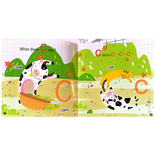 这本书引入字母S和A,通过海豹和鳄鱼的故事让孩子们认识这两个字母并掌握字母的发音。这是一套专为中国低幼儿童打造的自然拼读故事书,旨在帮助孩子建立英语音素意识,轻松开启孩子英语启蒙的大门。一共三个级别,每个级别12本书。第一级是围绕26个字母的故事,每册2-3个字母。第二级是进阶故事,故事中有第一级别的26个字母音和双字母组合的故事。第三级是高阶故事,故事中有第一级别26个字母音、双合字母和三字母组合的故事。用这种简单轻松的方式接触和了解自然拼读,培养小朋友们的音素意识,为真正的自然拼读学习打基础。