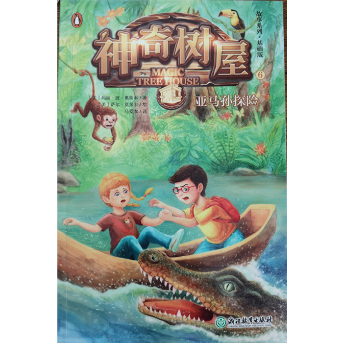“神奇树屋”系列描述一对小兄妹杰克与安妮的冒险故事。八岁半的哥哥杰克,理性冷静,喜欢看书,他会将沿途看到的事物,重点式地记录在笔记本上;而七岁的妹妹安妮,喜爱幻想与冒险,并且勇于尝试。这两个一动一静、个性截然不同的兄妹,在森林里发现了一个堆满书的神奇树屋,神奇树屋就像时光机器,带他们到一个个不同的时空中旅行。于是,兄妹俩来到史前时代的恐龙谷,和骑士探访中古世纪的城堡,到古埃及破解木乃伊的秘密,跟着海盗出海寻宝……每一次的冒险都紧张刺激、精彩得不得了,更能让你在探险过程中掌握不少知识呢!
