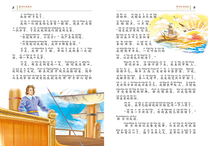 小说《鲁滨孙漂流记》的作者丹尼尔·笛福是十八世纪英国的小说家,他出生在伦敦。他的人生经历非常丰富,干过各种行业,到过欧洲大陆许多国家。这部小说是他受一个苏格兰水手海上历险的经历启发而写成,大获成功,被誉为“英国和欧洲小说之父”。