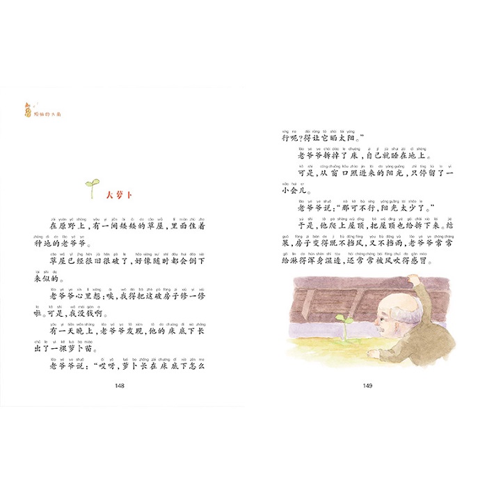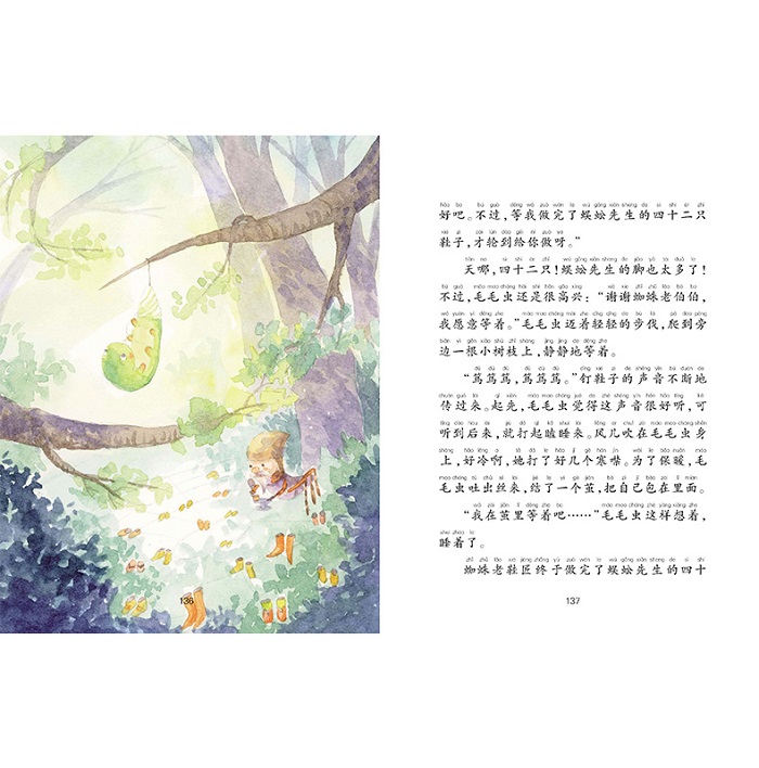 绘图上,配图是造型可爱、色彩清新的水彩手绘插图。编排上适当加入一些小趣味,带给孩子的阅读体验。