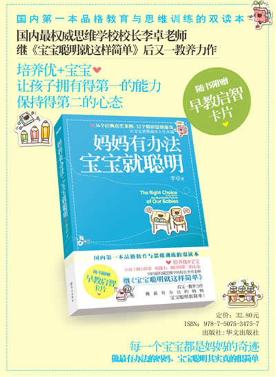 《妈妈有办法,宝宝就聪明》这是一本幼儿早期品格教育与思维开发相结合的图书,也是作者李卓从事幼儿早期教育历时多年的一部工作笔记,是继《宝宝聪明就这样简单》之后第二部育儿案例。