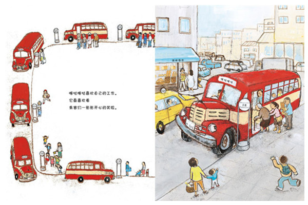 ★作者除了对老巴士的生动描绘以外,还细致地描绘了小城里的日常生活场景:等候巴士的男女老幼;街边的咖啡店、超市、书店、画廊、银行等;还有在街心公园玩耍嬉戏的孩子,以及坐在长椅上看报纸、休闲聊天的人们……
