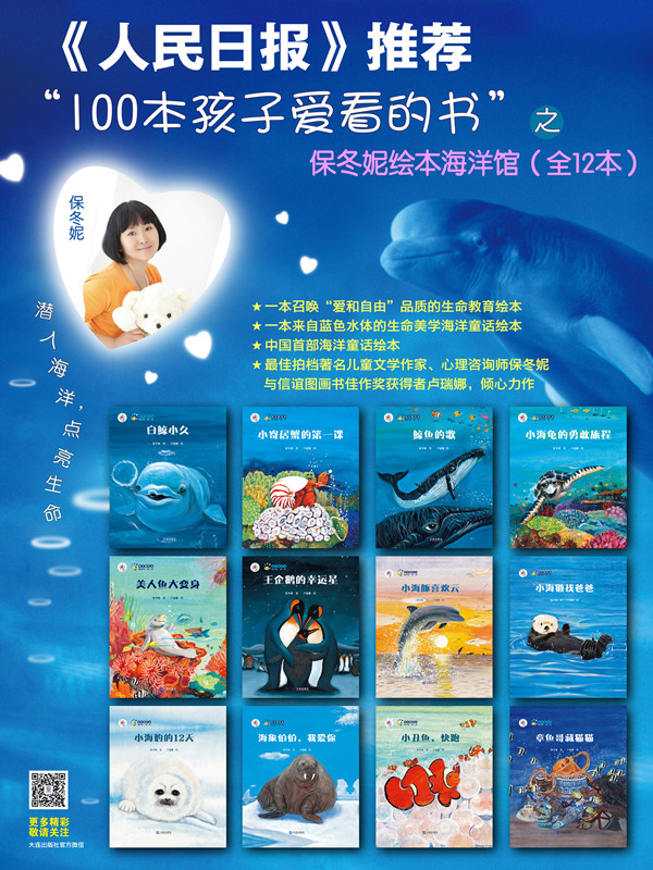 “保冬妮绘本海洋馆”制作精良,以宏大而真实的画面、绚丽而丰富的色彩、真诚而优美的文字和独特的视角向孩子们展示了亲切的海洋世界,既有蓝白色极地世界的静谧,也充分展现了五彩斑斓的海底世界,令人心驰神往;保冬妮极富诗意的优美文字宛如荡漾于海中的美妙乐曲,与大海一同深入心底,唤起我们生命中*美的品质,愿我们在蓝色的世界发现生命的本源,找到生存的意义和亮度!