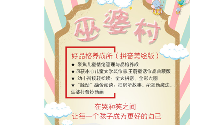 山里面有个巫婆村,巫婆村里住着各种各样的巫婆。有懒巫婆、馋巫婆、精巫婆、坏巫婆,酸巫婆、咸巫婆……还有好多好多巫婆,她们性格各异,在巫婆村上演了一个个有趣的故事。读完这些故事,可以促进小读者良好品格的养成,并让他们学会正确地与人交往。拼音加美绘还可以锻炼小读者独自阅读和看图作文的能力。