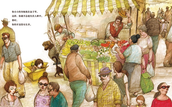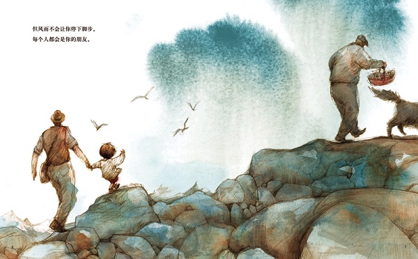 3. “从他,到我,再给你。”从头至尾,父亲饱含智慧的话语悦耳动听,闪耀着光芒,穿插于令人赞叹不已的图画中。画面寥寥几笔就呈现出三代人之间的温情,以独特的方式唤起孩子对“根”的记忆和对父亲的认同。这本书是对过去珍贵记忆的敬意,也是对伴我们走过一生的箴言的敬意。当深爱的人离去,留给我们的将会是记忆,而那个曾经亲口对我们说这些话的人,将永远活在我们的心中。