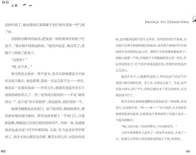 对于每个像杰西的孩子,心中有着小小的倔强,有着因害怕被人嘲笑而无法说出口的梦想,渴望理解,渴望沟通,渴望一个出口。虽然不是每个人都有幸遇见莱斯莉,但是我相信读过这本书的孩子一定都能找到“通往特雷比西亚的桥”,然后走向一个更广阔的世界。——豆瓣网友书评