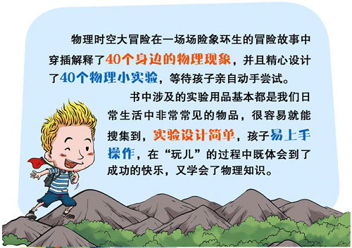 有乐趣——充满奇思妙想、惊心动魄的冒险故事   有意趣——小小的物理知识在生活中大有用处   有童趣——开动头脑风暴,在实验中寻找真相   故事与科学紧密相连,趣味十足:   用通俗易懂的物理知识解析生活中的科学现象,启发孩子们的兴趣   全方位系统训练,打下坚实基础:   从易到难的渐进式学习方式让孩子们轻松走进物理世界   动手实验,培养科学的思维方式:   简单易操作的物理小实验,让孩子在亲身体验中加深理解   这是一套让孩子轻松走进物理世界的科普漫画读物,它以生动有趣的方式阐述了物理学科的几大板块,展现了数十种科学现象背后的物理原理。为帮助小读者对物理学重要理论产生认知并对此产生浓厚的兴趣,让小读者对已掌握的知识做到活学活用,编者极用心地将物理学中的典型问题穿插在各种奇思妙想的情节设计当中,而这些看似极深奥的问题大都来自我们平凡的日常生活中。   开启了一种充满意趣的阅读体验,让孩子能够不由自主地进入物理学天地。