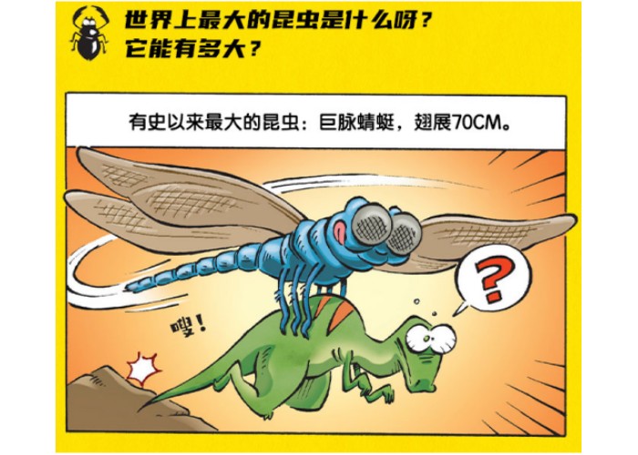 比脱口秀更爆笑的昆虫科普! 它怎么会这么大?!有史以来最大的昆虫:巨脉蜻蜓,翅展70cm。 它的生命怎么这么短?生命最短的昆虫:蜉蝣,仅能存活几小时。 它怎么能跳这么高?!堪称“跳高达人”的昆虫:跳蚤,轻松跳过340个自己的高度。 昆虫的血液有多少种颜色?白蚁的巢穴有11层楼高?蚂蚁也会养“宠物”?蚊子最怕的声音?演技最高超的昆虫?爱吃塑料的昆虫? 爆笑看点篇篇有,昆虫知识学到手!