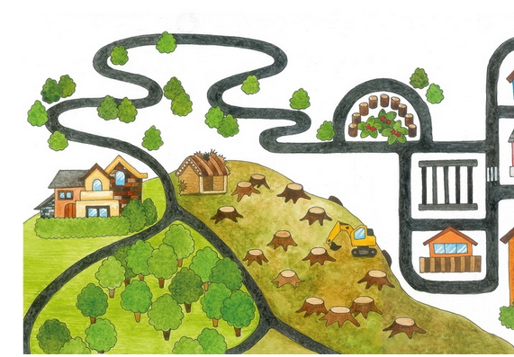 大白要搬家了,他赶紧跑去跟小黑道别。谁知道,小黑的家一片狼藉,而附近的森林也被砍伐一空。大白找了很久,终于在大雨中救出了被埋在泥土里的小黑,赶紧跑回家去。谁知道,却没有赶上搬家的车。