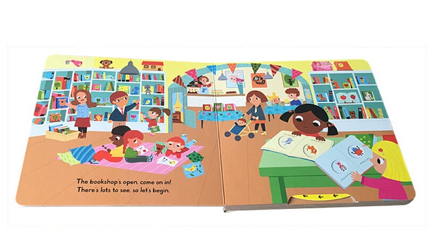 There's so much to see and do in the Busy Bookshop! Children can join in by pushing, pulling and turning the tabs to bring the shop to life. Spin the wheel to change the pictures in a book, pull the tab to make a dinosaur pop up and help the author turn the pages as he reads.