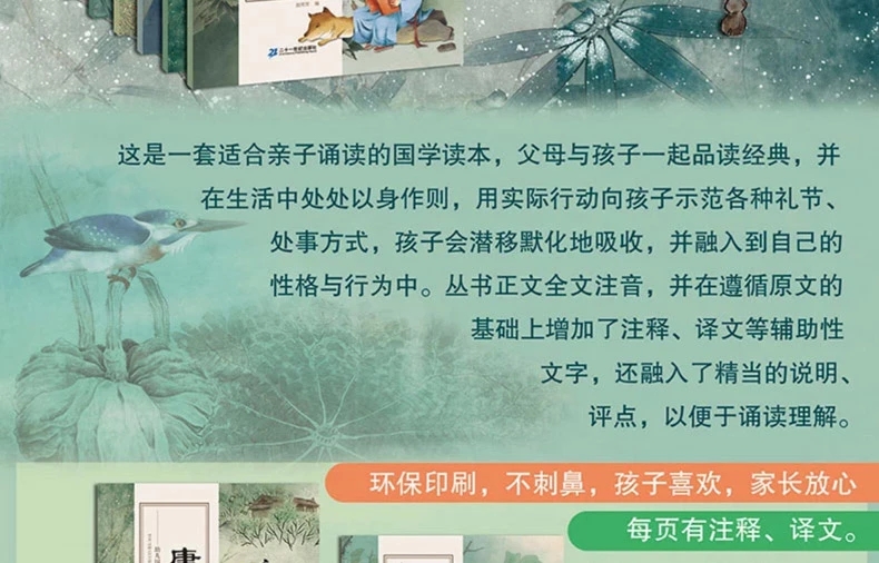 《幼儿国学启蒙经典(国绘版 套装共6册)》精选孩子最爱读的国学经典,图文并茂,四色印刷;加注拼音、注释、译文;并选编有趣的故事,拓展孩子的阅读视野,提升孩子的阅读水平。配以精美手绘插图,让孩子在轻松阅读中学会做人,增长智慧,积累知识。