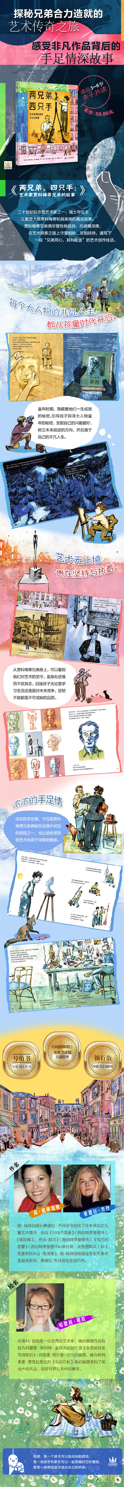 阿尔贝托·贾科梅蒂 (Alberto Giacometti) 是二十世纪标志性艺术家之一,其高大、细长、骨瘦如柴又孤独的雕塑被认为是从二战的废墟中站起来的,展示了一种新的艺术精神。如今,他的作品为世界各地的博物馆收藏增光添彩。 瑞士存在主义雕塑大师阿尔贝托·贾科梅蒂的雕塑作品举世闻名。他所享有的盛名,离不开孩童时起就专注艺术创作的孜孜不倦,更离不开他的兄弟迭戈·贾科梅蒂感人至深的慷慨相助。本书讲述了贾科梅蒂兄弟风雨同舟、兄弟情深的故事,重现了阿尔贝托·贾科梅蒂艰辛的艺术探索之旅。